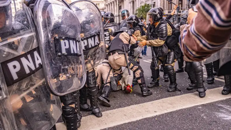 “Esta violencia no se limita a cifras agregadas: tiene rostro y consecuencias irreversibles. Incluye casos letales, como el asesinato de Facundo Gómez por fuerzas federales en Salta (diciembre de 2024); casos de máxima gravedad, como el de Pablo Grillo (marzo de 2025); y al menos 5 casos graves de manifestantes que perdieron la vista de un ojo por el impacto de proyectiles disparados por las fuerzas de seguridad”, recalcó el informe. Estas cifras exponen “un patrón de violencia sistemática destinado a disciplinar y amedrentar a quienes ejercen su derecho a la protesta”.